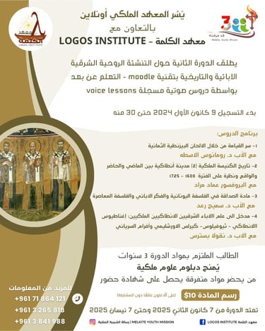 Those who wish to enroll in this program do not necessarily have to be university graduates or specialists in a particular field, but rather their goal is to become cultured in the path of the Eastern fathers and discover the treasures of Christ in the heritage of their Church and to radiate the risen Christ.